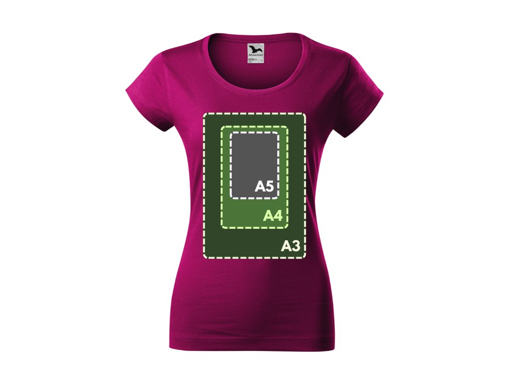 Pro snadnější přípravu návrhu si můžete stáhnout šablonu produktu, do které jednoduše vložíte svůj motiv. Šablona slouží pouze jako ilustrační podklad pro umístění potisku – pomůže vám lépe odhadnout jeho velikost a polohu. 👉 Stáhnout šablonu pro dámské tričko (PNG).