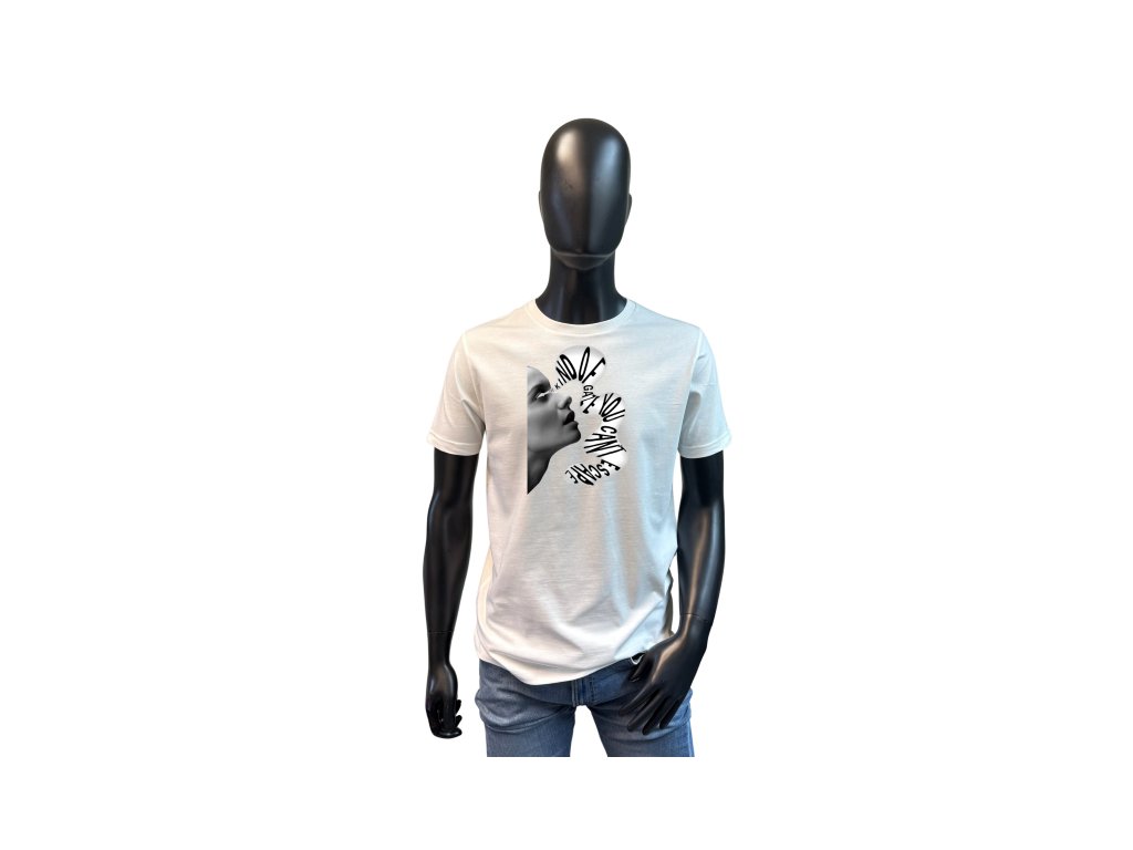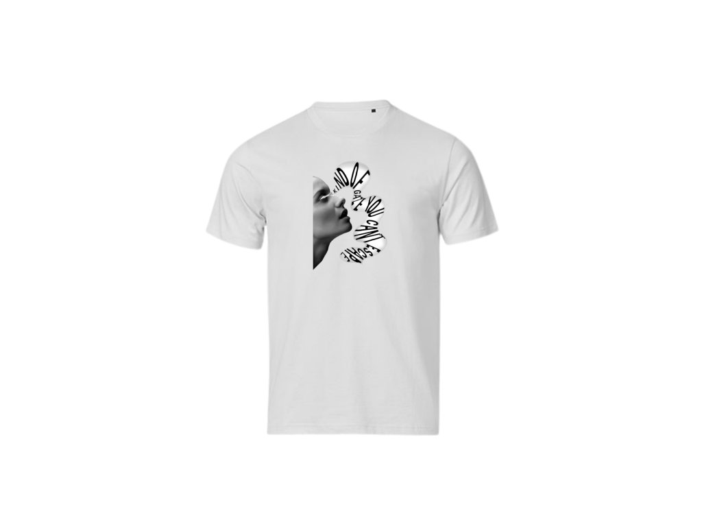 Kind of gaze you can’t escape v bílé verzi působí čistě, ale v jeho jednoduchosti je síla. Motiv pracuje s kontrastem – světlo proti stínu, ticho proti napětí. Je to tričko o přitažlivosti, která není nápadná, ale nepopiratelná.
