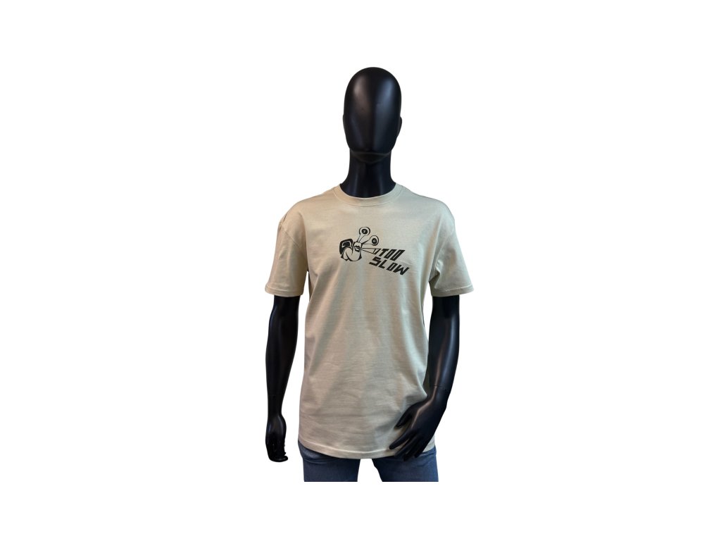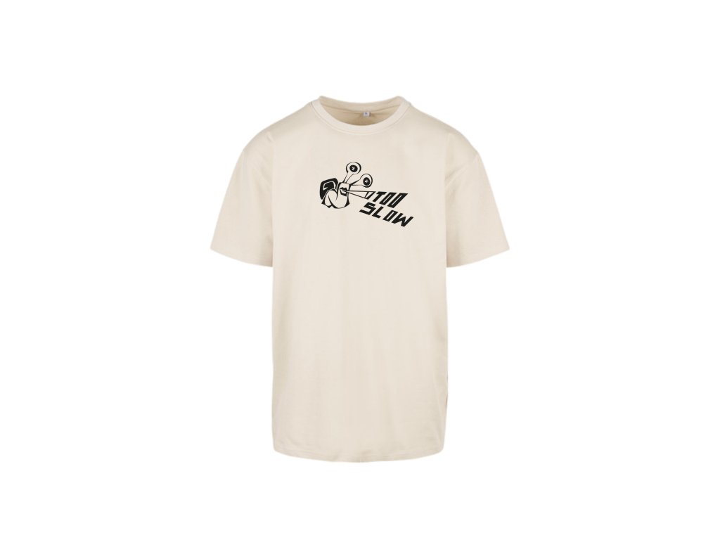TOO SLOW – Sand Oversize je jako volné odpoledne bez plánu. Žádný tlak, žádné spěchání. Jen klid, světlo a prostor. Písková barva odkazuje na přírodu a teplo, které nepálí. Motiv doplňuje náladu – decentní, přirozený, skoro jako dech.